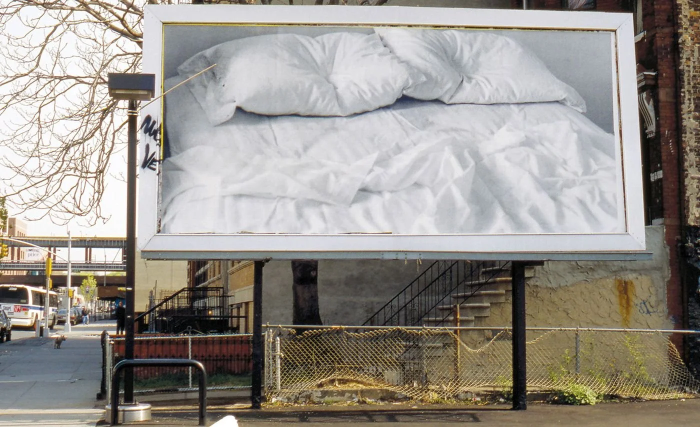 One of the pieces for which he got wide recognition was a billboard project, part of the Museum of Modern Art’s Project Series, in 1992. His images of an empty bed appeared on commercial billboards around the city. What was great about this piece was that as it was situated in the public domain without any explanatory text, everyone who saw it could interpret the piece differently. For me, it was reminiscent of a classic Imogen Cunningham bed picture. There was something incredibly sad about it. The implication to me was that the bed once had but now did not have two people in it. Something had happened. Something was missing, absent. I saw it as a testimonial to his lover, who had died. So you didn’t literally have the information, it was completely melancholic and enigmatic with some sort of lingering emotional impact. You bring all of your life experience to it and wonder what’s with that bed?